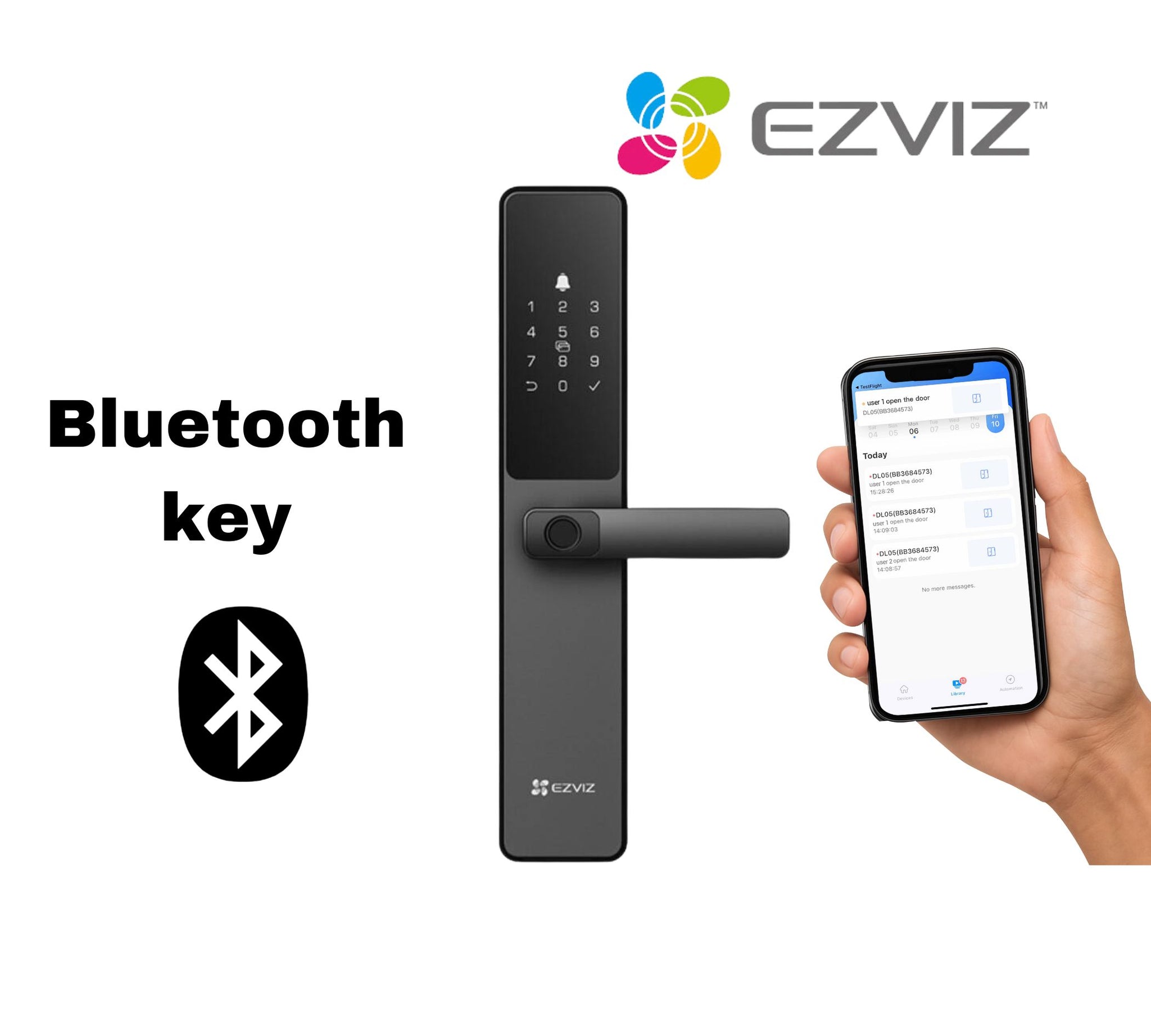 Enjoy fast and secure access using your fingerprint, smartphone, passcode, proximity card, or emergency mechanical key. Connected via Bluetooth or 2.4GHz Wi-Fi, the DL05 keeps you informed wherever you are through the EZVIZ App, giving you full control and peace of mind.
